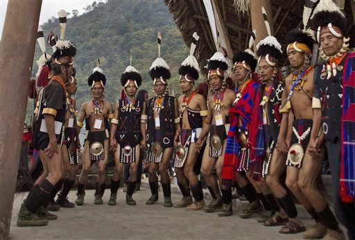 I costumi degli indigeni Naga al festival di Hornbill nel villaggio Kisama (Nagaland), il forte Taragarh che sovrasta la città di Ajmer (Rajasthan), un tempio a Khajuraho (Madhya Pradesh).