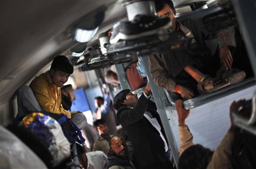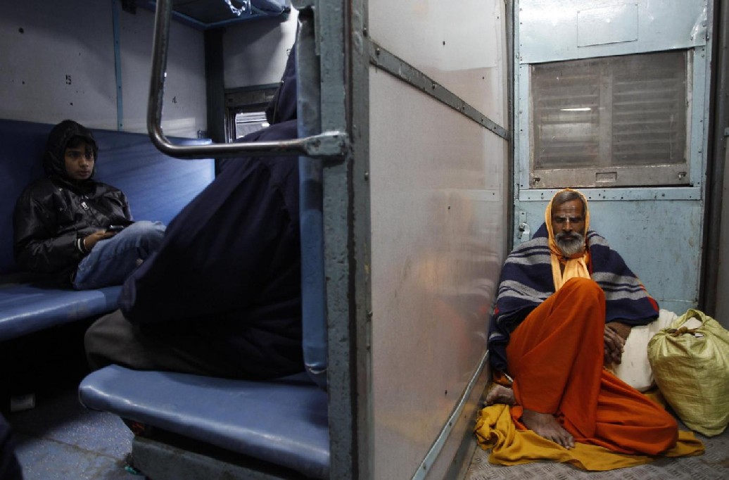 La linea ferroviaria indiana è presa d'assalto ogni giorno da oltre14 milioni di passeggeri. Ma le condizioni di viaggio sono spesso drammatiche: vagoni sovraffollati, condizioni igeniche al limite e disagi rendono gli spostamenti quasi inumani (foto LaPresse).