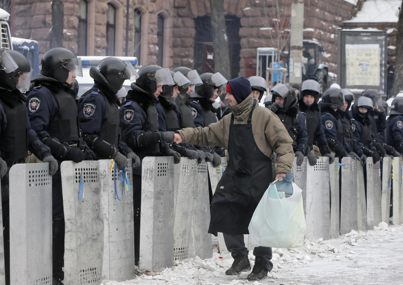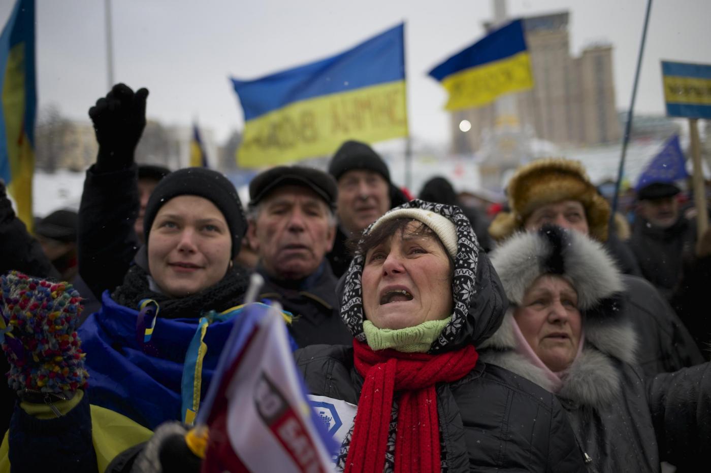 Continuano le proteste in Ucraina cominciate il 21 novembre, dopo che il presidente Viktor Yanukovich ha annunciato la sospensione dei preparativi per l'entrata nell'Ue, spiegando che intendeva piuttosto concentrarsi sul rafforzamento dei rapporti con la Russia. Numerose le manifestazioni contro il governo e a favore dell'adesione all'Ue (foto LaPresse).