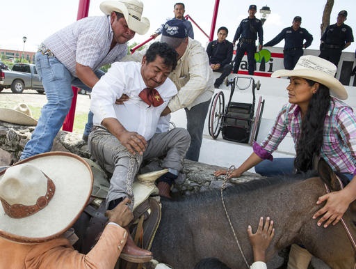 L'arena di Cuautitlán Izcalli, a Città del Messico, ha ospitato il "Pararodeo", dove persone con disabilità si sono cimentate nel tradizionale sport dei cowboy o gauchos. Un modo, secondo gli ispiratori della manifestazione, per far gustare anche a chi vive su una sedia a rotelle, la tradizione del rodeo e al tempo stesso sperimentare una particolare forma di riabilitazione, dove il domare l'animale consolida e sviluppa la fiducia in sé stessi (foto Ap).