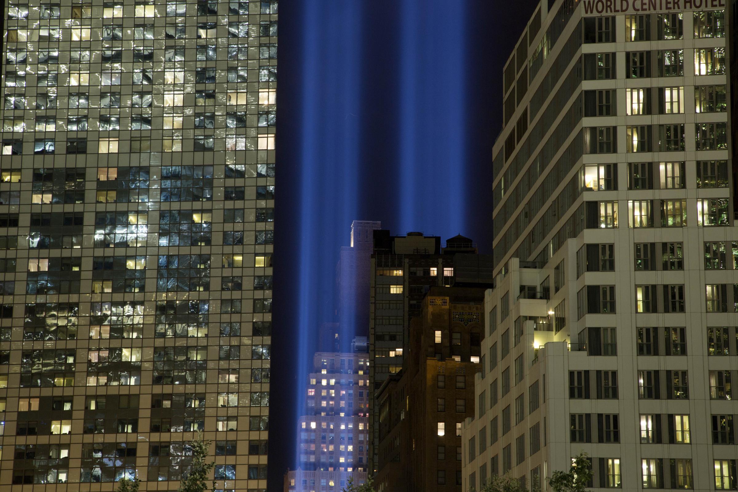 Oggi due enormi torri di luce spiccheranno a Manhattan in ricordo dell’11 settembre 2001. Come ogni anno dal 2002, 88 fari verranno accesi dalle 18 fino a mezzanotte dopo la cerimonia di commemorazione a Ground Zero, che vedrà il passaggio di consegne dalla municipalità al Memorial & Museum e alla World Trade Center Foundation. Quest’anno anche il pubblico avrà accesso alla piazza e potrà assistere all’accensione del “Tribute in Light” (Foto Ap)