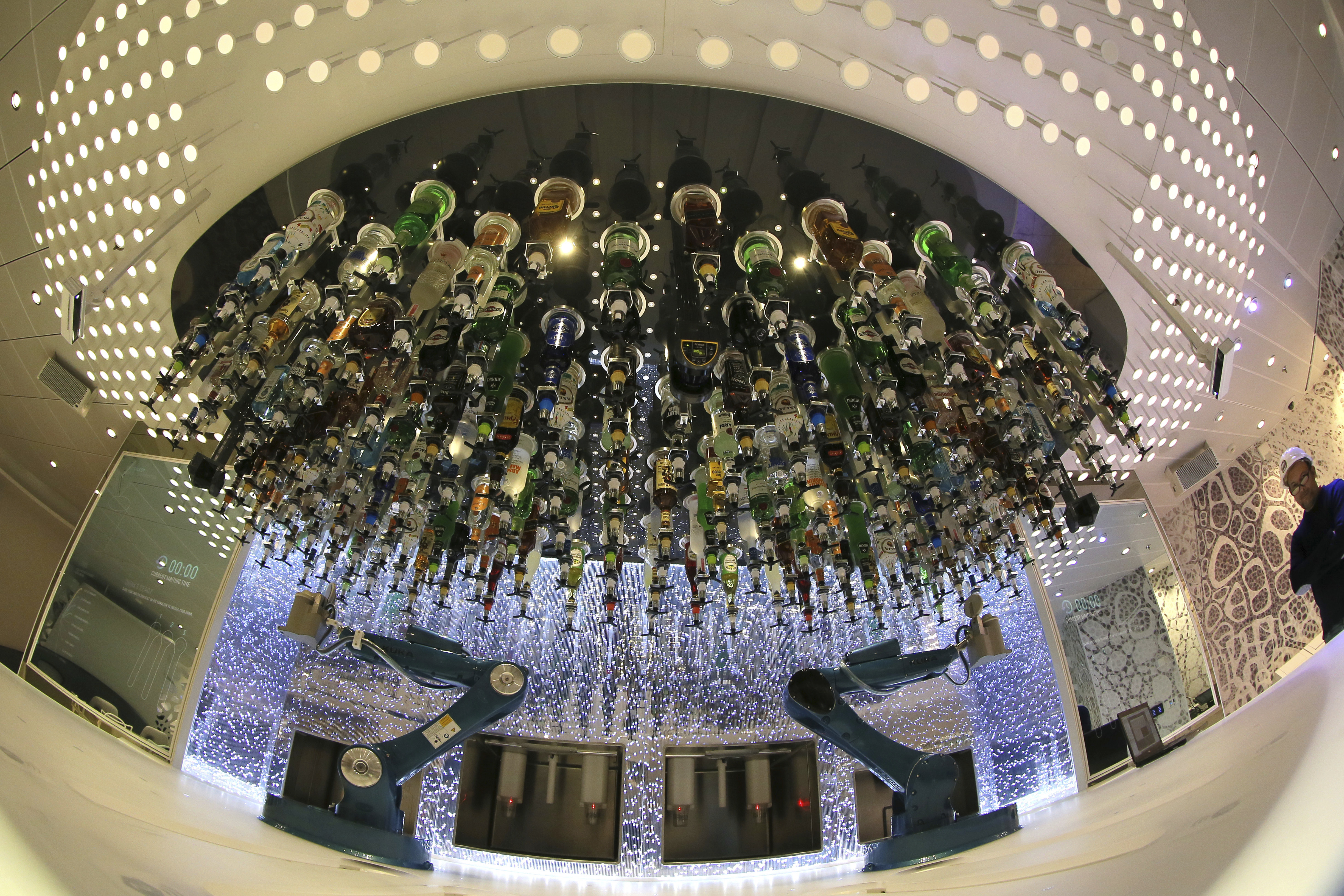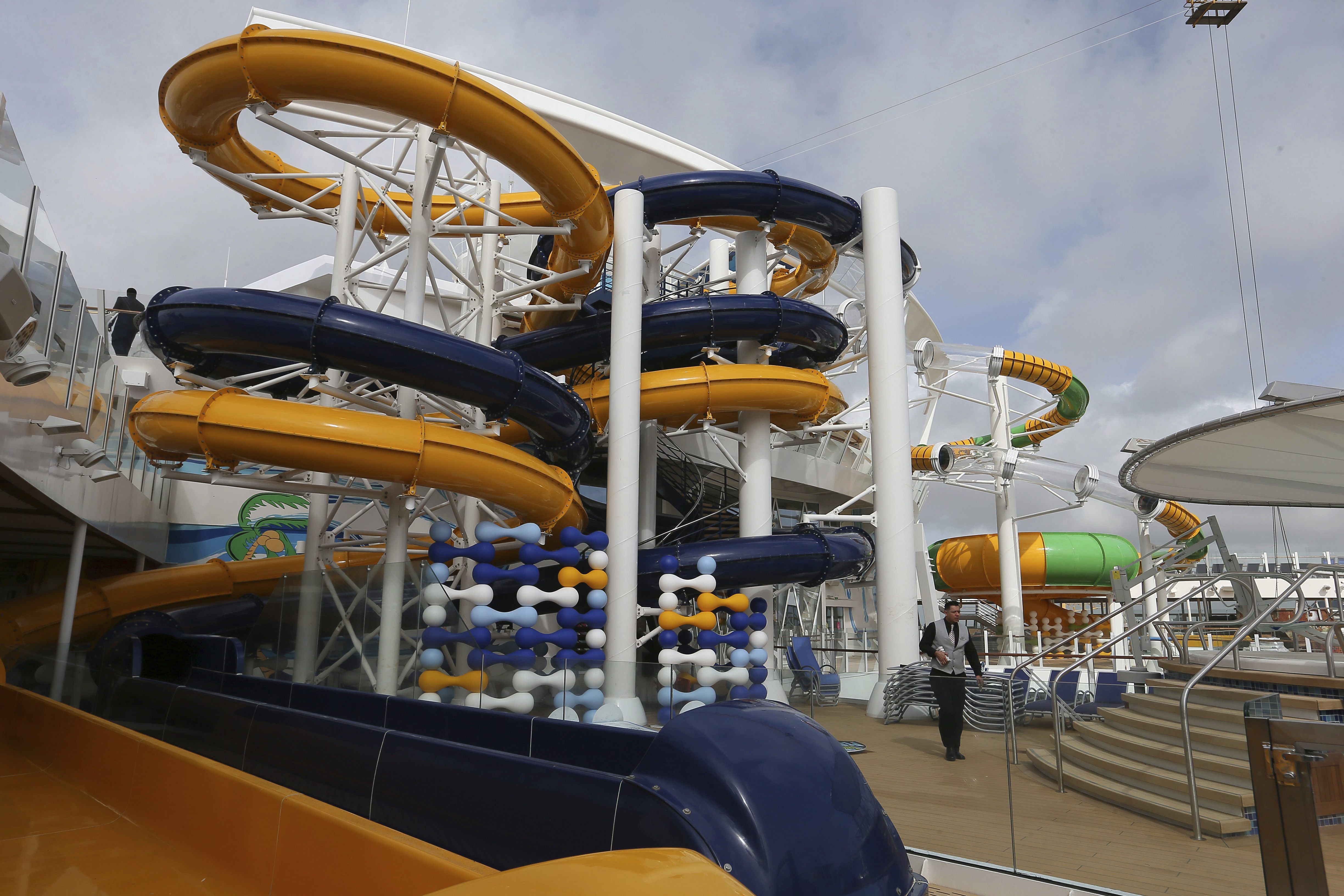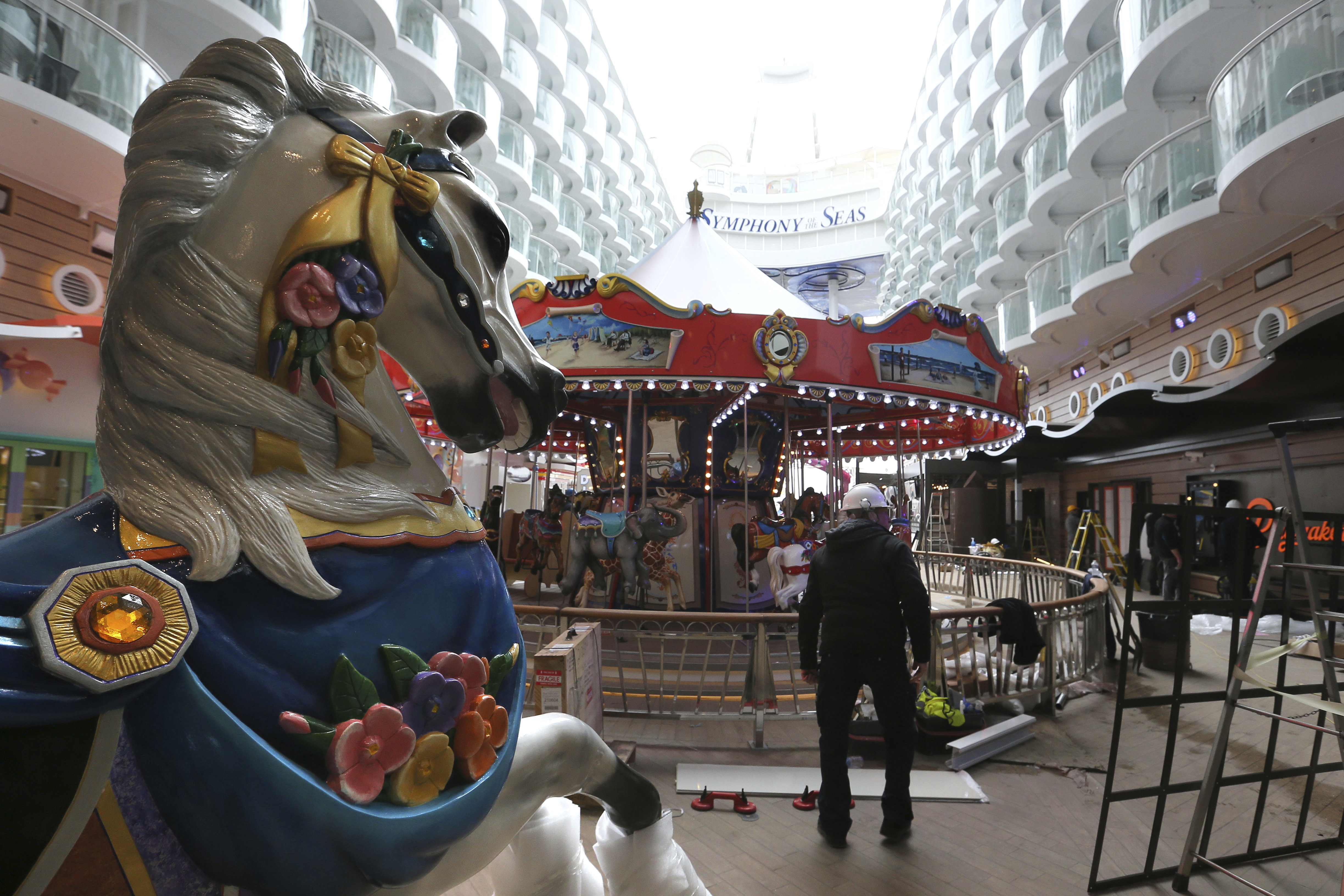 La Symphony of the Seas è al momento la nave da crociera più grande al mondo con i suoi 362 metri di lunghezza e le 228 mila tonnellate. Alla fine dei lavori, dopo il viaggio inaugurale dal cantiere di Saint Nazaire in Francia, è stata consegnata a Royal Caribbean, la famosa multinazionale delle crociere. Porterà i primi passeggeri nel Mar Mediterraneo dal prossimo aprile. Diamo un po’ di numeri: 18 ponti, 2200 dipendenti, 8 mila passeggeri. E poi celebri attrazioni tra cui la Zip Line, il minigolf, il simulatore di surf Flow Rider, il Rock Climbing walls e non ultimo l’Ultimate Abyss, lo scivolo di poppa, è in assoluto il più grande mai realizzato a bordo di una nave da crociera. Con queste immagini immaginiamo la prossima vacanza! (foto Ap)