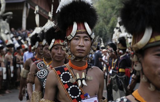 Giochi, artigianato, danze, cerimonie religiose, sport, cucina e arte animano le giornate di festa che le tribù Naga, nello Stato del Nagaland, nel nord-est dell'India, si concedono ogni anno la prima settimana di dicembre. Le tribù si riuniscono in nome del grande Hornbill, il maestoso uccello simbolo di questi popoli, in una grande manifestazione che celebra la ricchezza della loro cultura tradizionale (foto Ap).