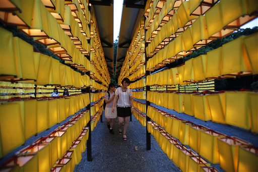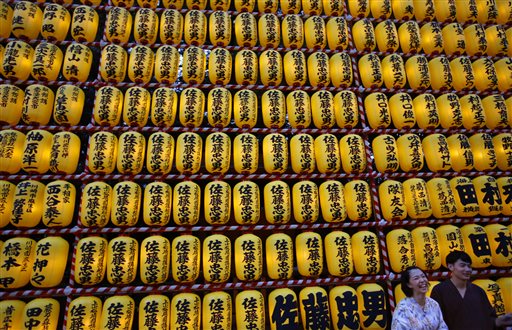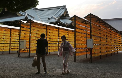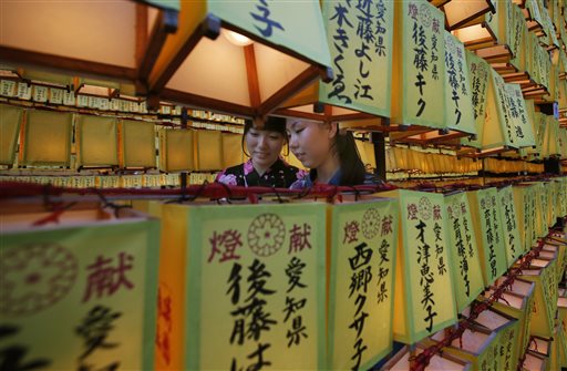 Il Mitama festival che ogni anno si celebra in Giappone vuole, attraverso centinaia di migliaia di lanterne, confortare le anime dei caduti durante la guerra mondiale. Le foto ritraggono il sacrario di Yasukuni di Tokyo dove su migliaia di lanterne in carta ui sono iscritti i nomi dei devoti del santuario già arrivati all'altra vita.