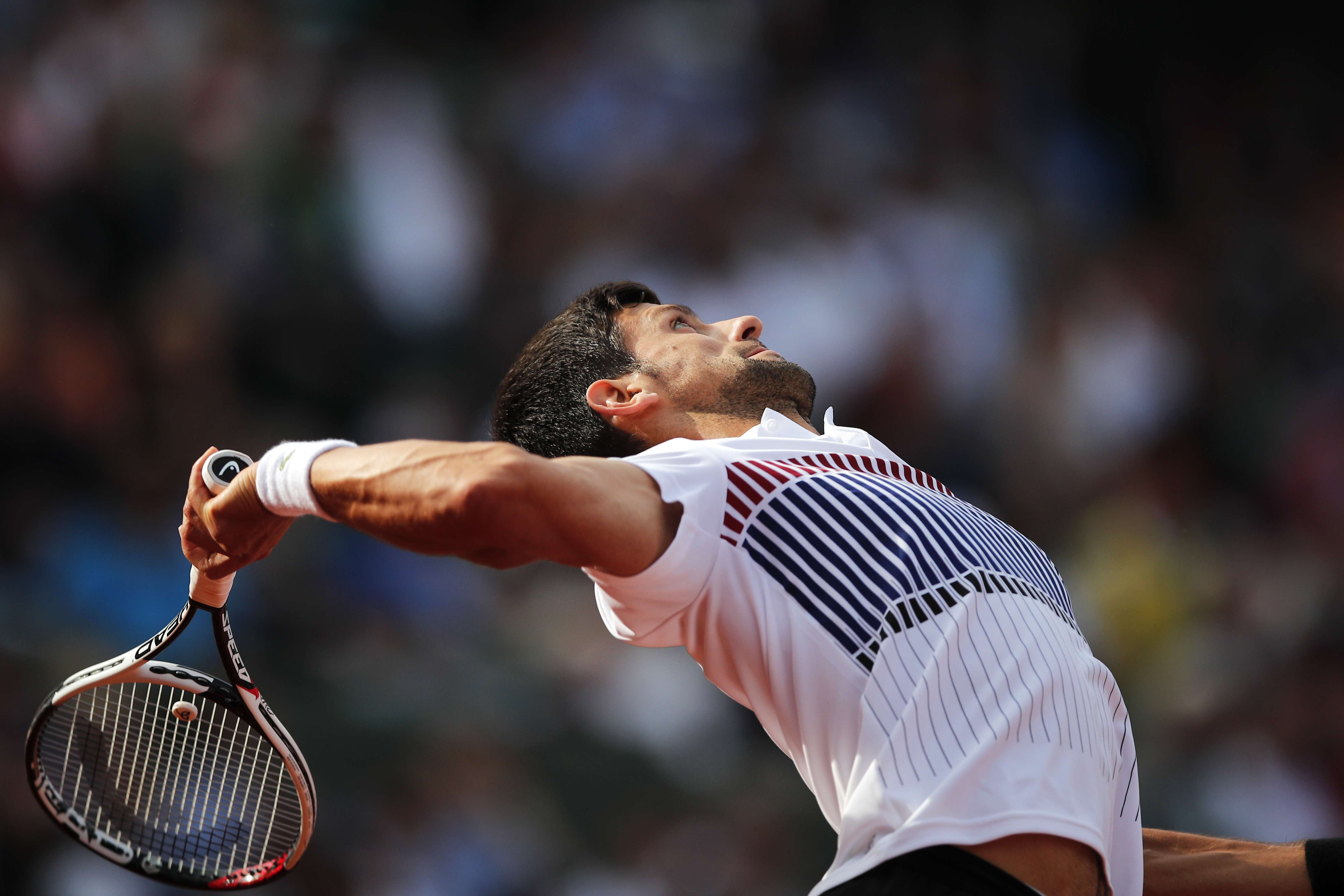 In queste immagini: l’argentino Horacio Zeballos nella partita contro l’austriaco Dominic Thiem; Thiem in un momento di esultanza; il serbo Novak Djokovic contro lo spagnolo Albert Ramos-Vinolas (due immagini); la svizzera Timea Bacsinszky fa il gesto del cuore dopo la vittoria contro Venus Williams; sempre Timea Bacsinszky durante la partita; l’esultanza della francese Kristina Mladenovic dopo la vittoria contro la spagnola Garbine Muguruza; e il pittoresco gesto atletico di Venus Williams.