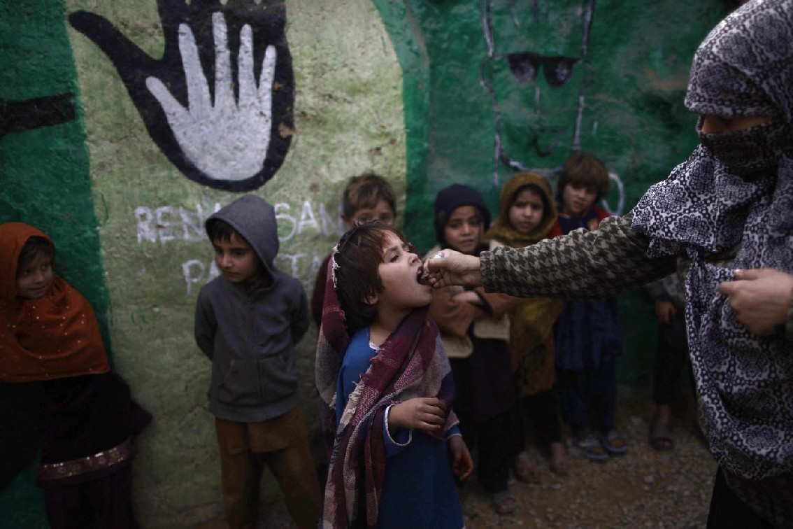 Islamabad, alcuni bambini ricevono il vaccino contro la polio. Pochi giorni fa alcuni operatori incaricati di distribuire il vaccino hanno perso la vita durante conflitti a fuoco tra militanti ed esercito.