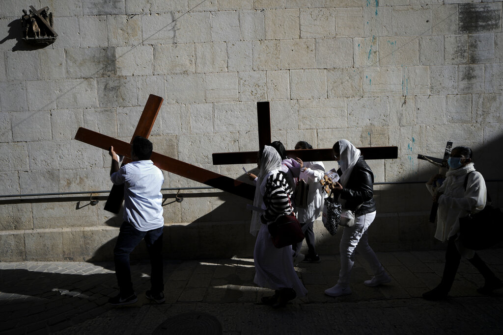 La ricorrenza del Venerdì Santo viene celebrata nel mondo attraverso varie pratiche e riti. Guardiamo le immagini provenienti da Paesi come l’India, il Guatemale, l’Australia, la Bolivia, il Kenya, Israele. In questo giorno i fedeli adulti sono invitati all’astinenza dalle carni e a consumare un solo pasto durante la giornata, un digiuno che è segno di penitenza per i peccati di tutti gli uomini che Gesù è venuto a espiare con la sua passione e morte. Questo è l’unico giorno dell’anno in cui non si celebra la messa e solitamente si effettua la Via crucis. Anche il papa la celebrerà questa sera al Colosseo e a una delle stazioni parteciperanno una donna ucraina e una russa che porteranno la croce, un gesto di pace fortemente voluto dal Vaticano. (foto Ap)