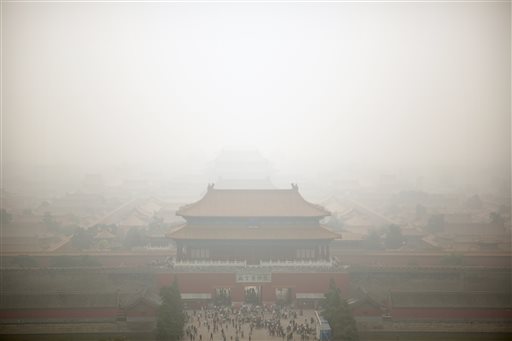 Lo smog avvolge la Città Proibita, in una giornata decisamente inquinata. Mercoledì 7 era l’ultimo giorno della festa nazionale cinese, tradizionale momento di punta per i viaggi turistici. Ma la qualità dell'aria nella capitale cinese superava di gran lunga i livelli considerati pericolosi per gli standard di misura internazionali.