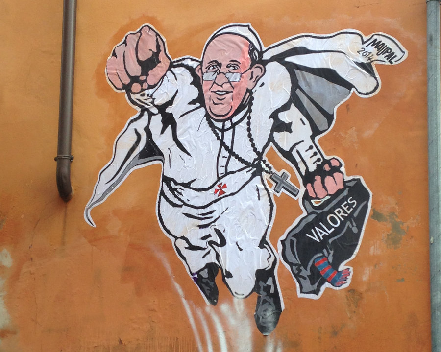 Nelle strade degli Usa, ma anche in Messico o a Giacarta, in Indonesia, non è raro incontrare persone vestite come i più famosi eroi mascherati. C’è chi spera di ricevere qualche dollaro dai turisti, chi fa pubblicità al proprio partito politico, ma la maggior parte lo fa solo per il piacere di assomigliare, per qualche ora, al proprio eroe preferito. Nel frattempo nei muri di Roma anche il papa è stato arruolato nella schiera dei supereroi…