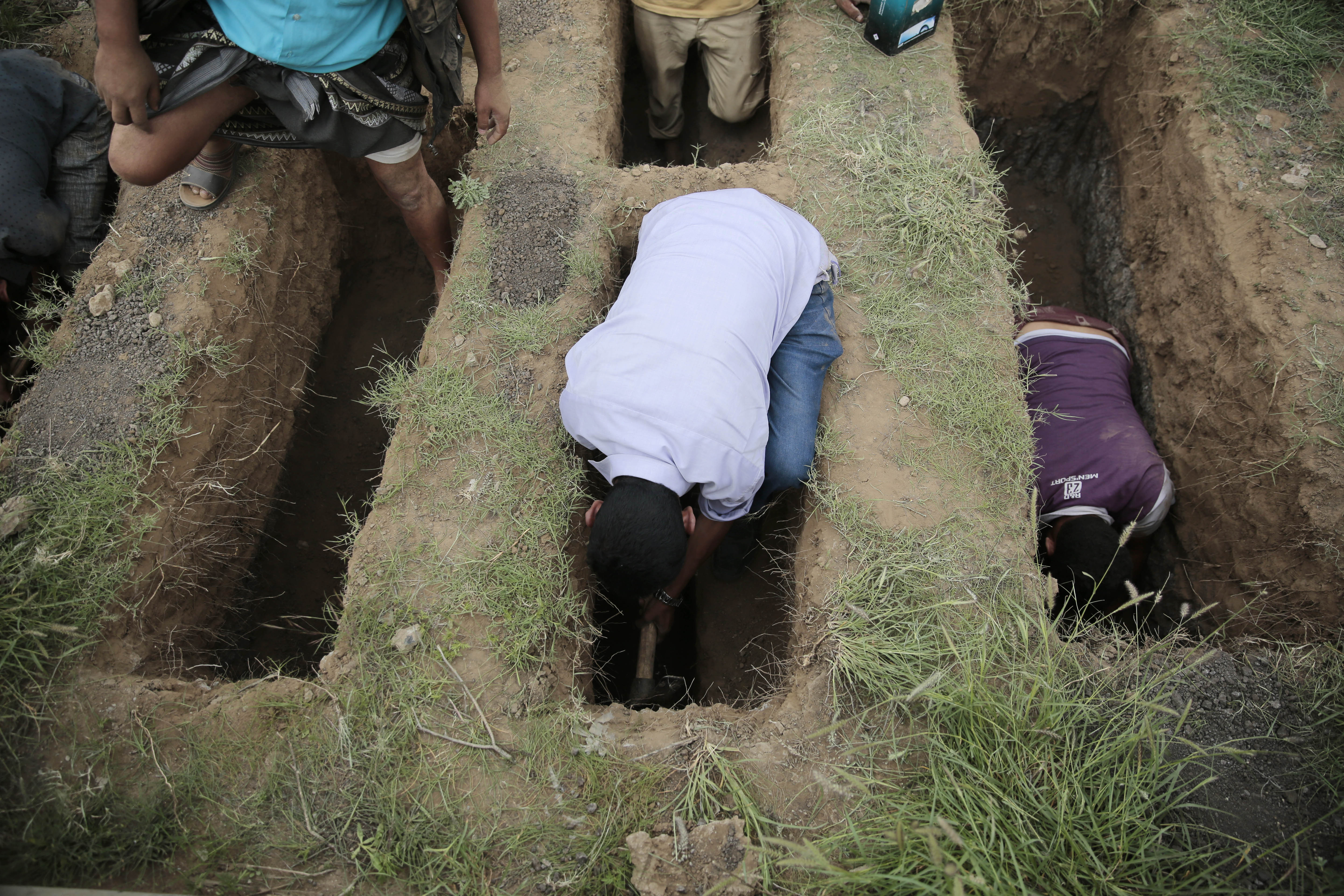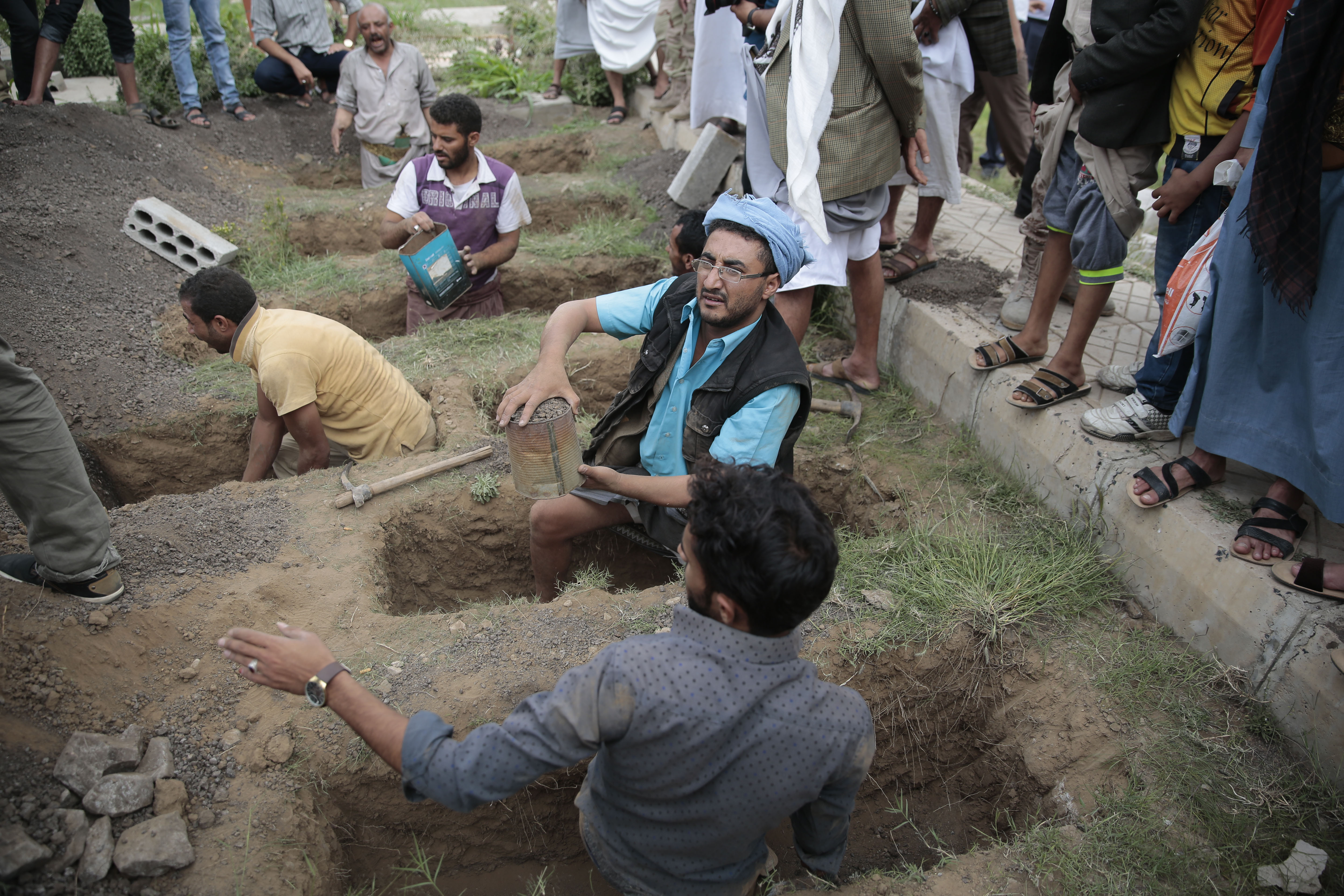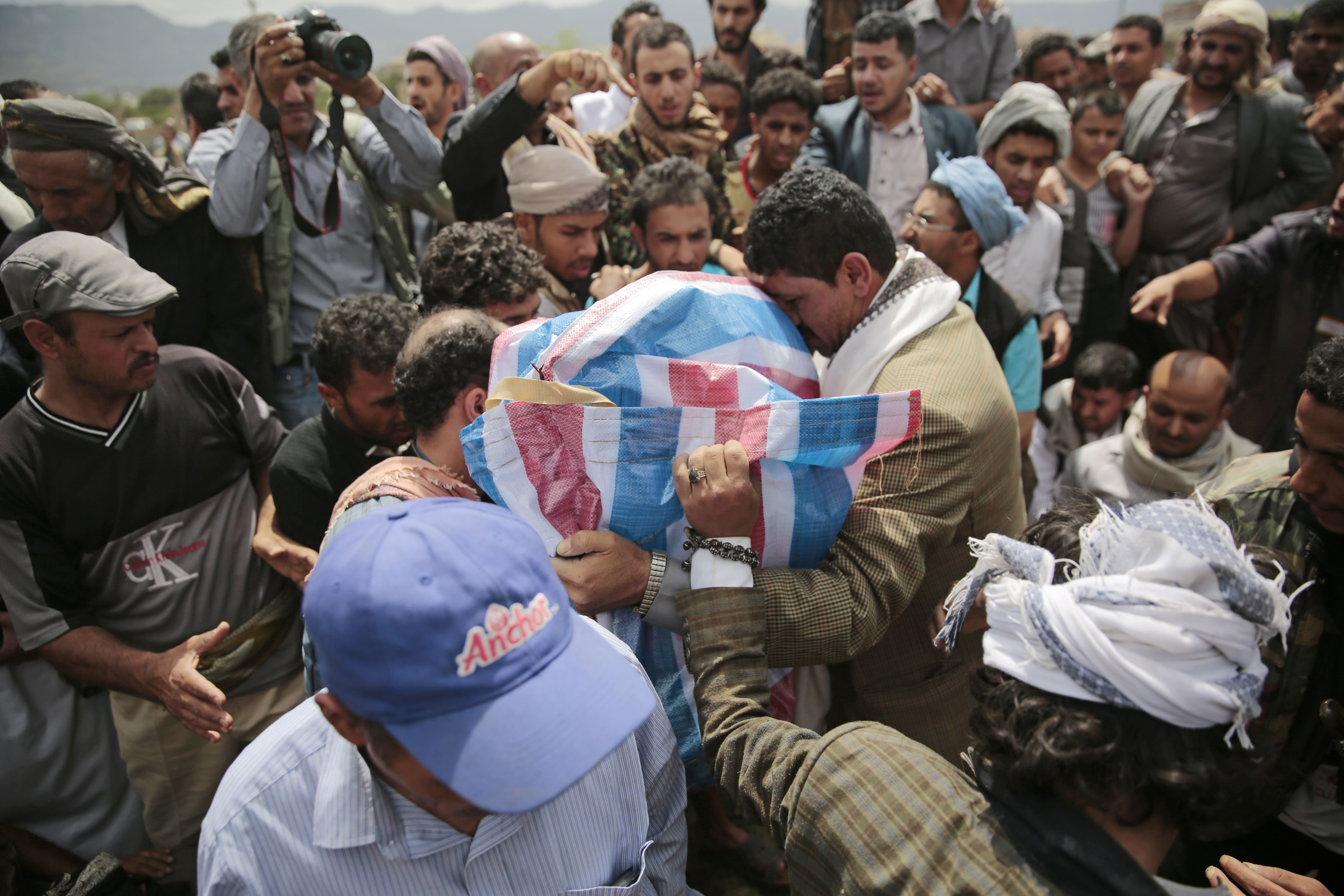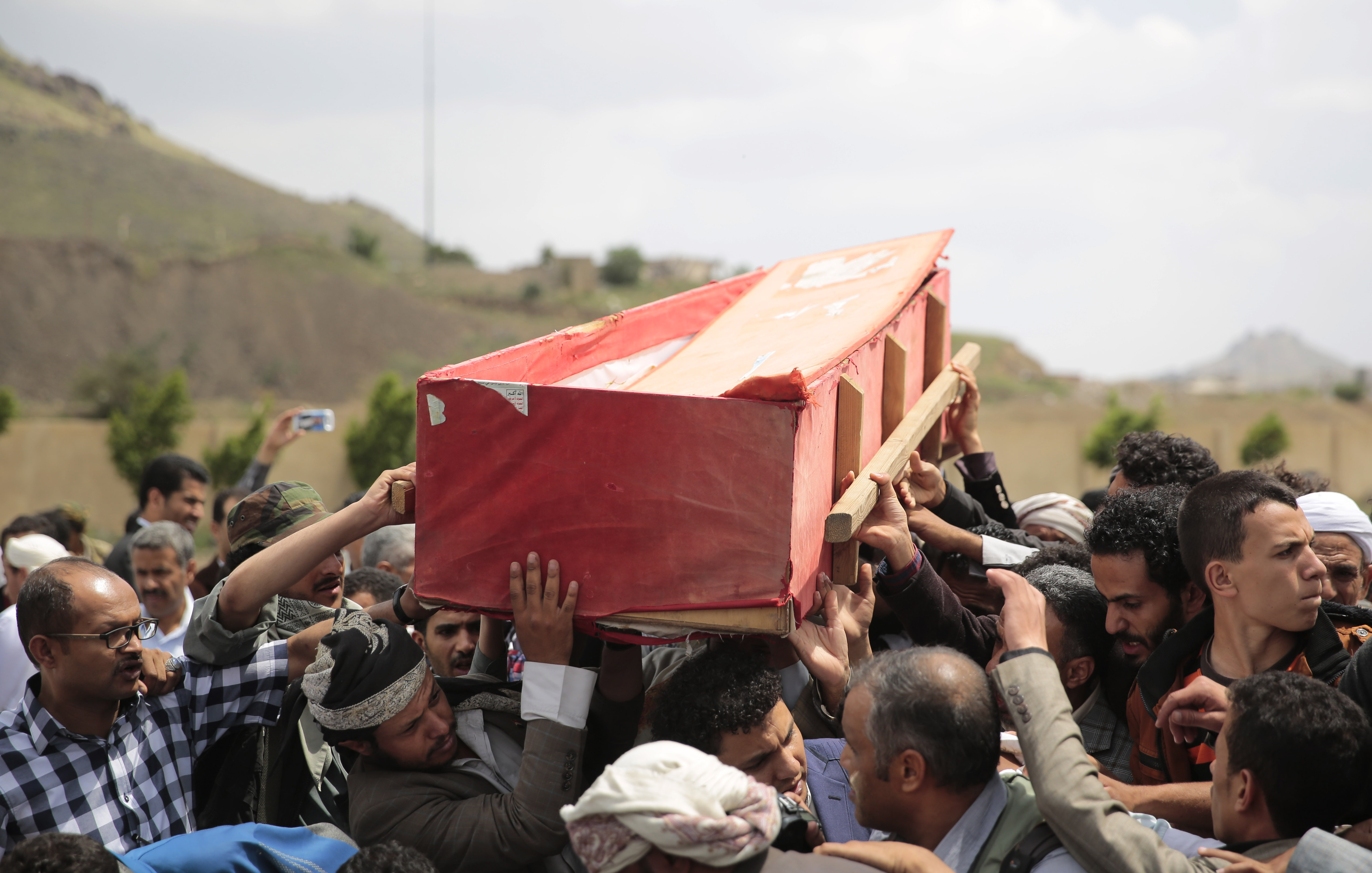 Non interessa molto i media internazionali il conflitto in corso nel piccolo Paese situato nell’estremo sud della penisola araba. Eppure continuano le morti e le distruzioni, tra la popolazione civile. Nella foto i funerali a Saana delle vittime dell’ultimo bombardamento degli aerei della coalizione Saudita.