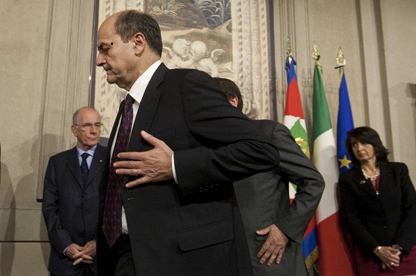 Giovedi 28 marzo, ore 18. Bersani sale al Colle e per un’ora riferisce a Napolitano gli esiti «non risolutivi» (ed ampiamente scontati) del suo tentativo e, di fatto, non ottiene l’incarico pieno. Formalmente, in casa Pd, si afferma che si sia trattato di un incontro interlocutorio, che non ha consentito di sciogliere la riserva (accettare e/o rinunciare all’incarico), lasciando in mano al presidente l’iniziativa di condurre personalmente approfondimenti e verifiche. Ma l’opinione più realistica è che Bersani, di fatto, più che ‘congelato’ sia stato ‘congedato’ da Napolitano. Definitivamente.