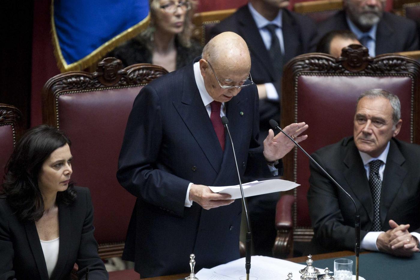 Giorgio Napolitano al Parlamento nel discorso inaugurale del suo secondo mandato