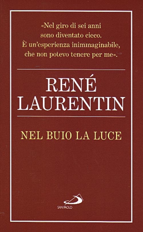 «Nel giro di sei anni sono diventato cieco. È un’esperienza inimmaginabile, rivelatrice di problemi profondi e sconosciuti. La cecità esclude non solo dallo spazio e dalla luce – così naturale per tutti – ma anche dalla società. Interrompe la comunicazione. Da qui derivano malintesi profondi. Il cieco e il vedente non si “vedono”: il cieco per la mancanza della vista, il vedente per oblio. Questo libro, alle frontiere della psicanalisi, tenta di dare una risposta per interrogarci ancora più radicalmente: che cos’è l’altruismo? Che cos’è la relazione? Che cos’è la luce?». Sono parole del noto mariologo, storico e giornalista, ancora attivo a 94 anni malgrado l’infermità agli occhi. Prova vissuta nella fede, e per questo generatrice di possibilità impensate, sia per sé stessi che per gli altri.