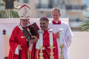 Papa Francesco con l’arcivescovo Corrado Lorefice durante la messa a Palermo, 15 settembre 2018.