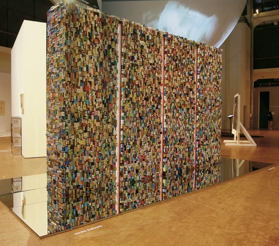 Nella rassegna roveretana, Scirpa è presente con il suo Tabellone consumistico (1999-2002); un’opera di grandi dimensioni, 284 x 644 cm. È un assemblaggio di involucri di prodotti vari, con legno, neon bianco e specchi. Si potrebbe definire un mosaico del nostro tempo perché la costruzione è composta di “tessere” di materiali di oggi, il cui effetto complessivo è identico a quello della superficie musiva: un’esplosione luminosa.
