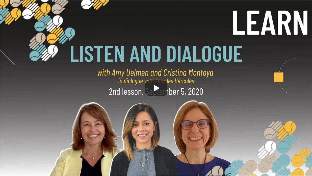 Se non siete ancora convinti dell’importanza del dialogo e dell’ascolto per il mondo di oggi, vi invitiamo ad ascoltare due esperte: Amy Uelmen, docente alla Georgetown Law School di Washington D.C. e Cristina Montoya, docente al Sophia University Institute. Tutte e due mostrano sfide e benefici del dialogo e dell’ascolto.