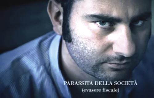 Dopo aver mostrato vari parassiti, lo spot dell’Agenzia delle entrate si ferma sul volto di un uomo dalla barba trascurata e lo sguardo sfuggente, il parassita della comunità, l’evasore. Nessuno di noi pensa di assomigliargli, così lo spot fa dimenticare che evasori siamo quasi tutti. Ogni giorno, nel nostro Paese vengono chiamati milioni di “salvatori” a trarci d’impaccio quando si ostruisce uno scarico, scatta senza motivo il salvavita, non si prendono i canali tv con il digitale; risolto il problema, si sa che quanto ci viene richiesto è senza ricevuta, altrimenti il prezzo aumenta dell’Iva.