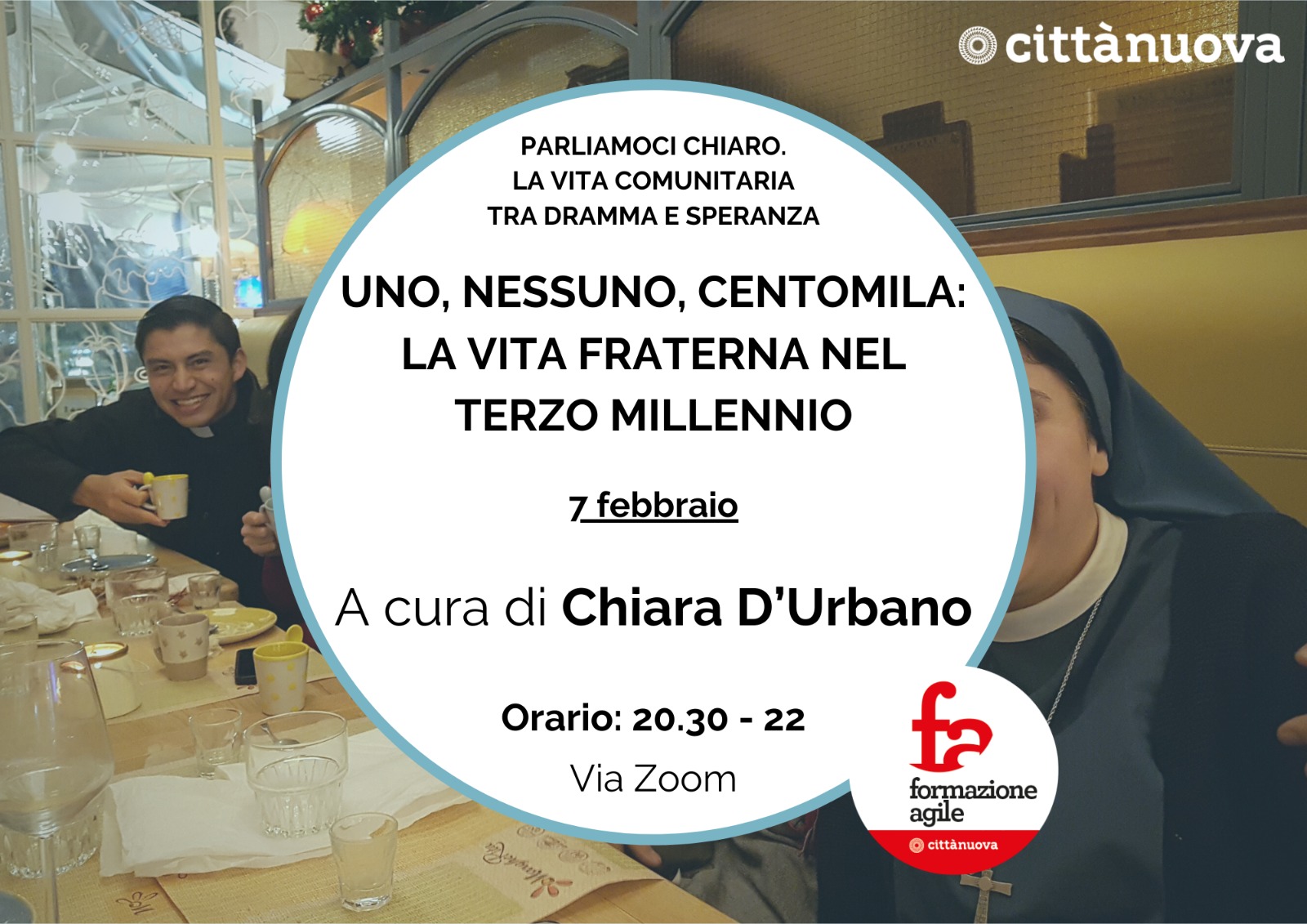 Spiritualità La vita comunitaria tra dramma e speranza di Marta Chierico “Uno, nessuno, centomila: la vita fraterna nel terzo millennio”. Questa sera, dalle 20.30 via …
