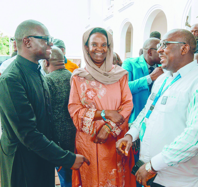 Padre Peter Afoukeze durante un’esposizione della mostra “Planting peace” al museo nazionale a Yaoundé. (VANILLA BOI STUDIO)