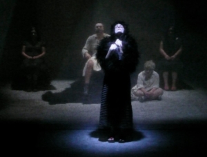 «O terra, rigetta dal grembo i defunti!». È il canto iniziale che s’ode nel silenzio. Sono figure fantasmatiche, apparizioni della mente di un sogno/incubo, quelle che vibrano nello spazio cupo di una stanza abitata da una sedia a rotelle a guisa di trono, e da due file di letti ospedalieri con manti di pelo nero su cui giacciono persone in carne ed ossa, ma che appartengono al regno dei morti. Appena sfiorate da una mano che le richiama in vita, una ad una prenderanno consistenza di personaggi per dire, per essere, per rievocare.
