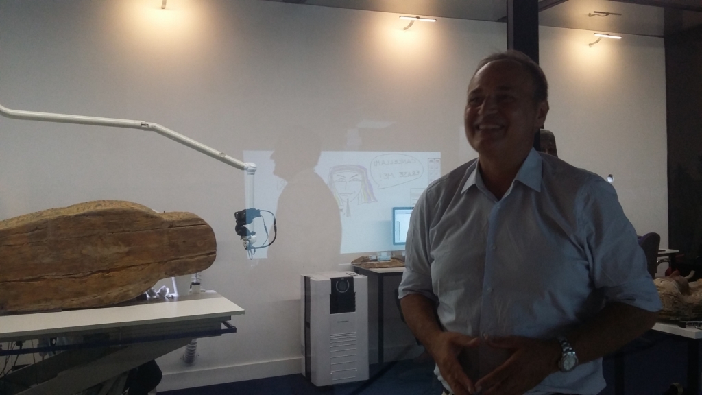 «Questo modo innovativo di realizzare un’esposizione è una nostra scelta – spiega il direttore dell’Istituto Europeo del restauro, Teodoro Auricchio – ed è stato ideato tre anni fa quando siamo stati chiamati dal Museo di Bruxelles per il restauro di questi sarcofagi, sperimentando così un nuovo metodo di concepire uno spazio museale. Abbiamo realizzato un modulo di cristallo altamente tecnologico e all’interno abbiamo installato il nostro laboratorio. In questo modo si opera in pubblico, nella sicurezza sia delle opere sia dei visitatori e degli operatori». Una novità assoluta che sta riscuotendo tanto successo.