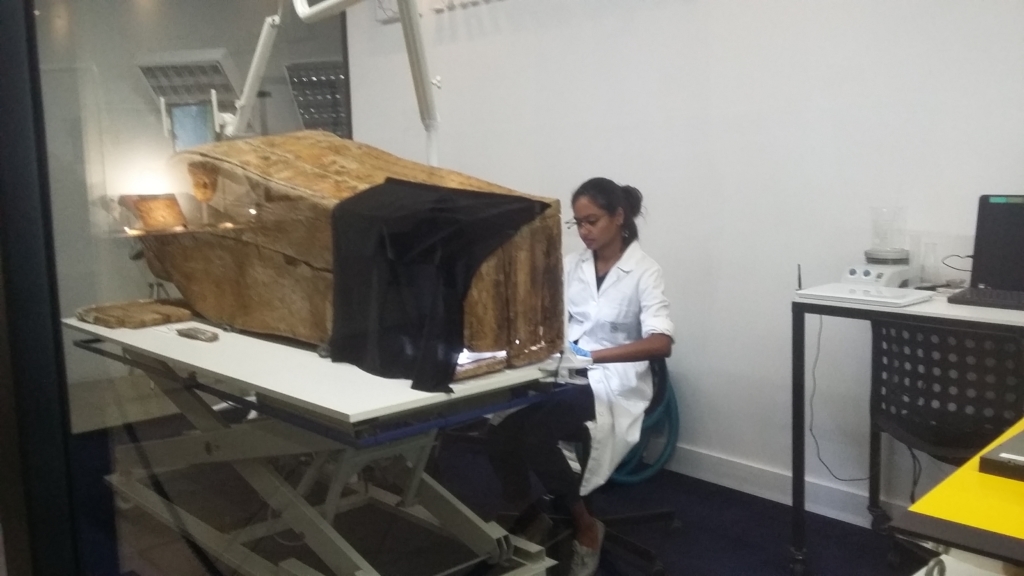 Oggi il lavoro dei restauratori consiste in un difficile recupero di opere così antiche. Si sta eliminando l’intervento di fine ‘800 per riportare i sarcofagi all’originale. I sarcofagi erano composti da un alveo (la cassa che conteneva il corpo), un coperchio e una ‘tavola di mummia’ che veniva poggiata sopra la mummia stessa. Ogni sarcofago “racconta” qualcosa della storia di quel periodo dell’Egitto, tra i meno conosciuti.
