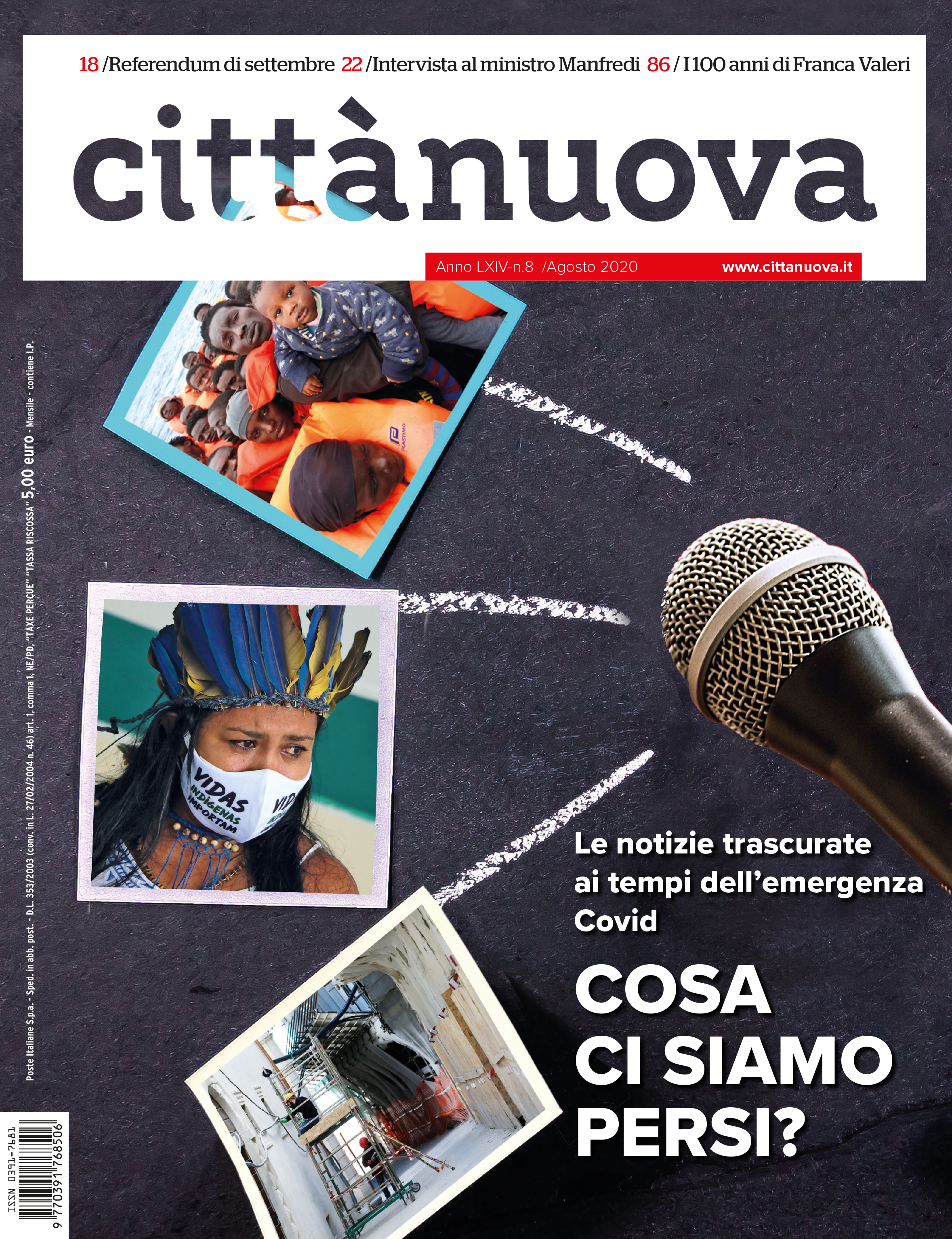 Il numero di agosto 2020 di Città Nuova propone un’inchiesta sulle notizie dimenticate durante l’emergenza Covid. Dalla ricostruzione post-sisma nel Centro Italia ad altri temi finiti ai margini del dibattito pubblico, il dossier riporta l’attenzione su questioni cruciali rimaste in sospeso. Un invito a non lasciare che la pandemia oscuri problemi strutturali e responsabilità irrisolte.