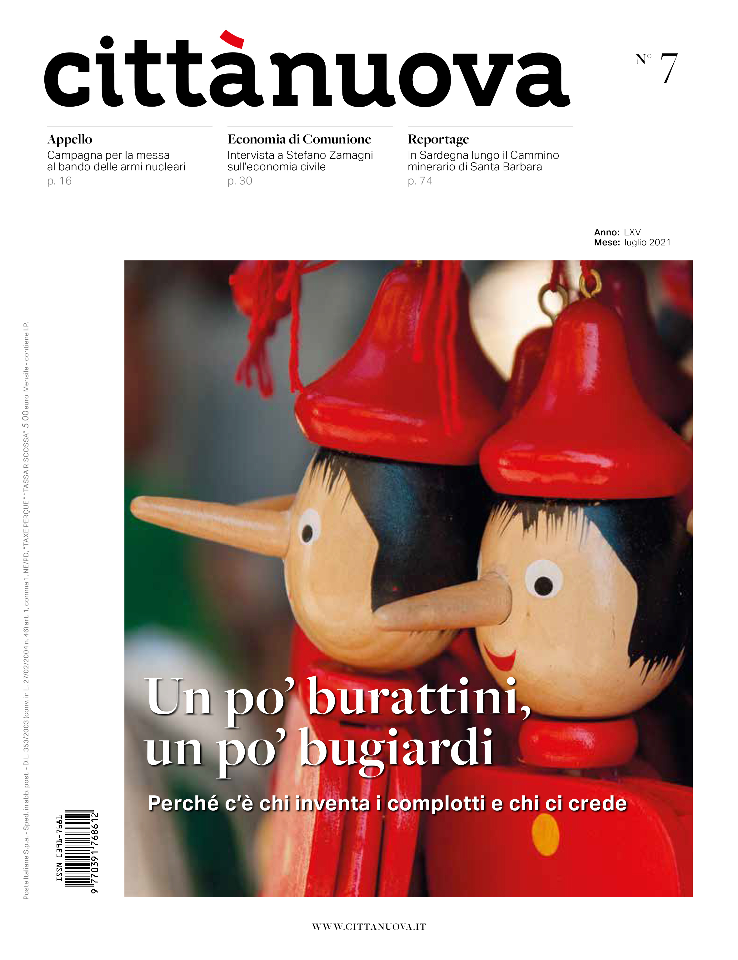 Il numero di luglio 2021 di Città Nuova propone un’inchiesta che analizza le radici della diffusione delle teorie del complotto e della sfiducia verso scienza e istituzioni. Attraverso esempi e studi, il dossier indaga paure, dinamiche sociali e disinformazione, invitando a riscoprire il pensiero critico e la responsabilità individuale nell’uso delle informazioni.