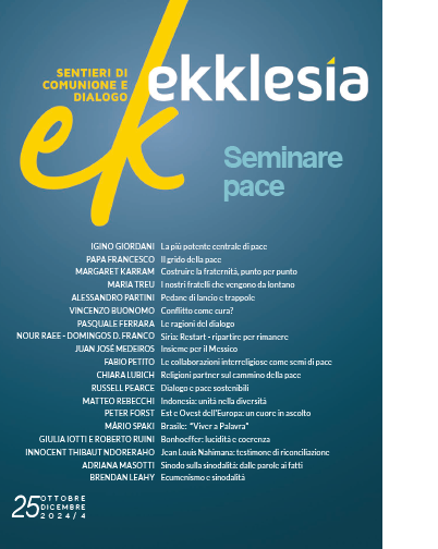 Il numero 25 di Ekklesía è dedicato alla pace e alla fraternità. Approfondimenti spirituali, analisi internazionali, testimonianze vive e riflessioni psicologiche per rispondere al bisogno urgente di un nuovo cammino di riconciliazione.