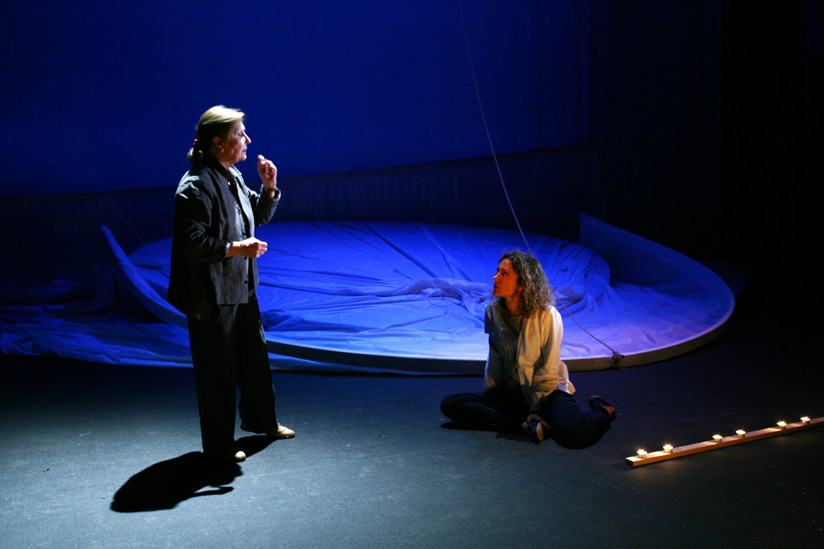 A quella storica messinscena è legato il nome di Giulia Lazzarini, reincarnazione di Ariel, lo spirito dell’aria. Ella lo diviene non solo per la magia di Prospero, ma anche e soprattutto per la sua propria magia. Ariel non ha più gambe, non ha più braccia, non ha più una voce sua e neppure una sua fisicità. Appesa a una fune volteggia nella scena, elastica e lieve, e nessuno potrà più reinterpretare questo spirito senza che il pensiero corra a lei e alla mirabile versione che le suggerì Stehler. A rivivere oggi è ancora lei in “Remake. Racconto di Tempesta”, che trova una cornice fortemente evocativa nel palcoscenico del Teatro Grassi, sede storica del Piccolo, culla della più viva ispirazione di Strehler. Lo spettacolo nasce dall’incontro di due donne, dall’intrecciarsi emozionato e commosso dei loro ricordi: Giulia Lazzarini e Myriam Tanant, che di Strehler fu collaboratrice all’epoca del sodalizio con l’Odéon. Lazzarini interpreta sé stessa, invitata a tenere una lezione a un gruppo di aspiranti attori. Una tempesta reale si abbatte sulla città e in teatro arriva solo una ragazza (interpretata da Maria Alberta Navello): sul palcoscenico vuoto, alla luce incerta delle candele di una ribalta improvvisata, tra frammenti di documenti filmati, ricordi, aneddoti, lievitazioni scenografiche, suggestioni musicali, l’attrice restituisce alla giovane allieva il senso di un’esperienza artistica straordinaria, una pagina mitica nella storia del Piccolo e tra le più alte del teatro italiano. Un appassionato tentativo, affidato a una testimone d’eccezione, di far rivivere il senso di una poetica e la sua rilevanza civile, di tramandare di generazione in generazione, con amore, una lezione indimenticabile.