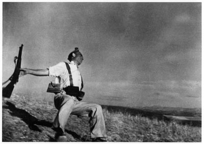 La sua foto più celebre, anche se controversa in quanto ad autenticità, è quella scattata in Spagna, a Cerro Muriano, nel 1937. Ritrae il momento in cui un miliziano comunista si piega all’indietro colpito a morte da una pallottola franchista. Famoso è anche il racconto per immagini dello sbarco degli alleati sulle coste della Normandia il 6 giugno del 1944. Nel nostro immaginario collettivo c’è anche l’istantanea del piccolo contadino siciliano che indica ad un gigantesco soldato americano – inginocchiato per stare alla sua altezza – la strada che hanno preso i tedeschi in ritirata. Immagini, accanto ad altre, che sono diventate icone del secolo e patrimonio visivo universale.