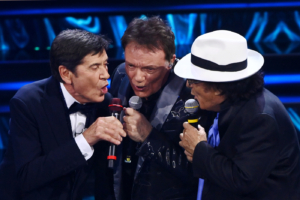 Sanremo, 73mo Festival della canzone italiana, seconda serata. Momento dell’esibizione di (da sinistra) Gianni Morandi, Massimo Ranieri e Al Bano (Foto Matteo Rasero/LaPresse 08 Febbraio 2023)