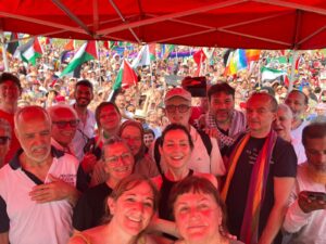 Il caldo afoso, 36 gradi con umidità al 90%, di domenica 15 giugno 2025 non ha fatto desistere il “popolo della pace”: attivisti con le bandiere arcobaleno, famiglie con bambini anche piccoli, giovani avvolti nelle bandiere palestinesi, settantenni con passo veloce hanno attraversato le vie di Marzabotto, località dell’Appennino bolognese, per salire a Monte Sole, con un percorso di 10 chilometri e pendenza del 30%, per partecipare alla prima marcia della pace Marzabotto-Montesole promossa dall’amministrazione comunale di Marzabotto per dire “no” al genocidio in atto a Gaza e per ribadire il “no” a tutte le guerre e all’aumento delle spese militari previste dl piano europeo e che in questi giorni si sta traducendo in operatività governativa.