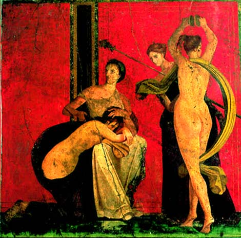 Il gustoso episodio mi è ritornato alla mente nel leggere il bellissimo saggio di Gilles Sauron Il grande affresco della Villa dei Misteri a Pompei (Jaca Book). In esso l’autore, illustrando alcune tra le numerosissime e spesso contraddittorie interpretazioni avanzate dagli studiosi circa questa megalografia fin dall’epoca della sua scoperta, nel 1906, ravvisa nelle pareti lunghe che si affrontano due diversi itinerari: quello di Dioniso, figlio di Zeus e di una mortale, che dopo essere stato fatto a pezzi dai Titani, venne assunto nell’Olimpo, e quello della madre Semele che, folgorata dal padre degli dei per aver osato vederlo così com’è, divenne pure lei partecipe della vita immortale. Ambedue gli itinerari confluenti verso la parete di fondo, dove queste divinità troneggiano. Un lieto fine, dunque, e un messaggio di speranza per quanti la religione ufficiale di Roma aveva deluso: nella fattispecie donne (ad esse infatti era riservata l’iniziazione ai misteri di morte e di rinascita di Dioniso), e nel caso specifico, secondo il Sauron, la domina della Villa, che egli vede raffigurata più volte e in vari atteggiamenti nel ciclo pompeiano, immedesimata in Semele quale inizianda.