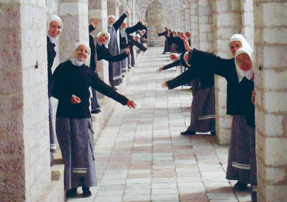 Contemplative, ma senza clausura. Questo permette loro di stare in mezzo alla gente! Tutti infatti possono incontrarle per le vie del paese, tra i banchi del mercato, in mezzo agli stand delle mostre o di lato al Santuario, dove vendono in una bancarella i frutti del loro lavoro, oppure in chiesa e dovunque le chiamano ad animare, con letture e canti, i momenti di preghiera, o a suonare la chitarra in mezzo ai prati con tanti giovani seduti in cerchio a riflettere sulla vita.