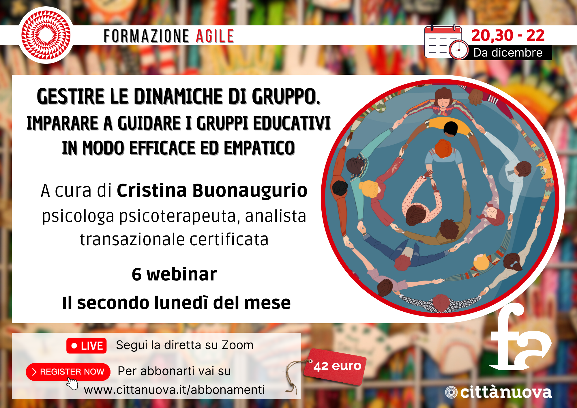 Famiglia Gestire le dinamiche di gruppo a cura di Redazione Al via, l’11 dicembre un nuovo corso tenuto da Cristina Buonaugurio, psicologa psicoterapeuta, analista …