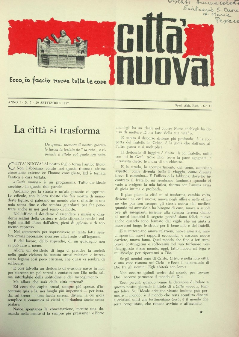 Focolari La storia letta da Città Nuova di Miriam Iovino Sono passati 60 anni dal primo numero, ma la rivista Città Nuova continua …