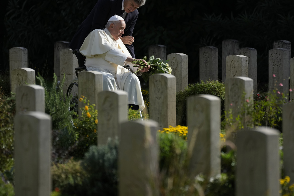 Spiritualità Papa Francesco celebra la messa per i defunti al Rome War Cemetery di Redazioneweb «La guerra è una sconfitta, sempre. Non c’è vittoria totale: uno vince sull’altro, ma …