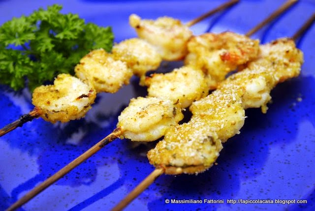 Ecologia Spiedini di gamberi al forno di Max Fattorini Una panatura aromatica ma leggera con miele di arancio, lime, rum aromatizzato allo zenzero …