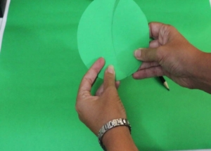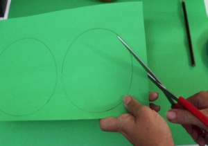 Iniziamo con ricalcare la circonferenza del cerchio su un cartoncino verde, facendo così due forme circolari che saranno il nostro riccio.