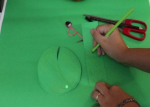 Disegnare su un altro cartoncino verde dei triangoli che ritaglieremo ed incolleremo sui cerchi per fare le punte del riccio.