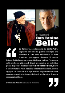 Minato dal tumore, Bello riuscì ad organizzare la missione dei 500 volontari disarmati che nel 1992 giunsero in una Sarajevo assediata dai serbi per cercare di fermare la strage. Un’azione temeraria oggi impensabile anche a livello operativo. Li muoveva una istanza che don Tonino espresse con queste parole che restano come una domanda aperta rivolta a chi ha orecchie per intendere: «È possibile cambiare il mondo col gesto semplice dei disarmati? È davvero possibile che, quando le istituzioni non si muovono, il popolo si possa organizzare per conto suo e collocare spine nel fianco di chi gestisce il potere?