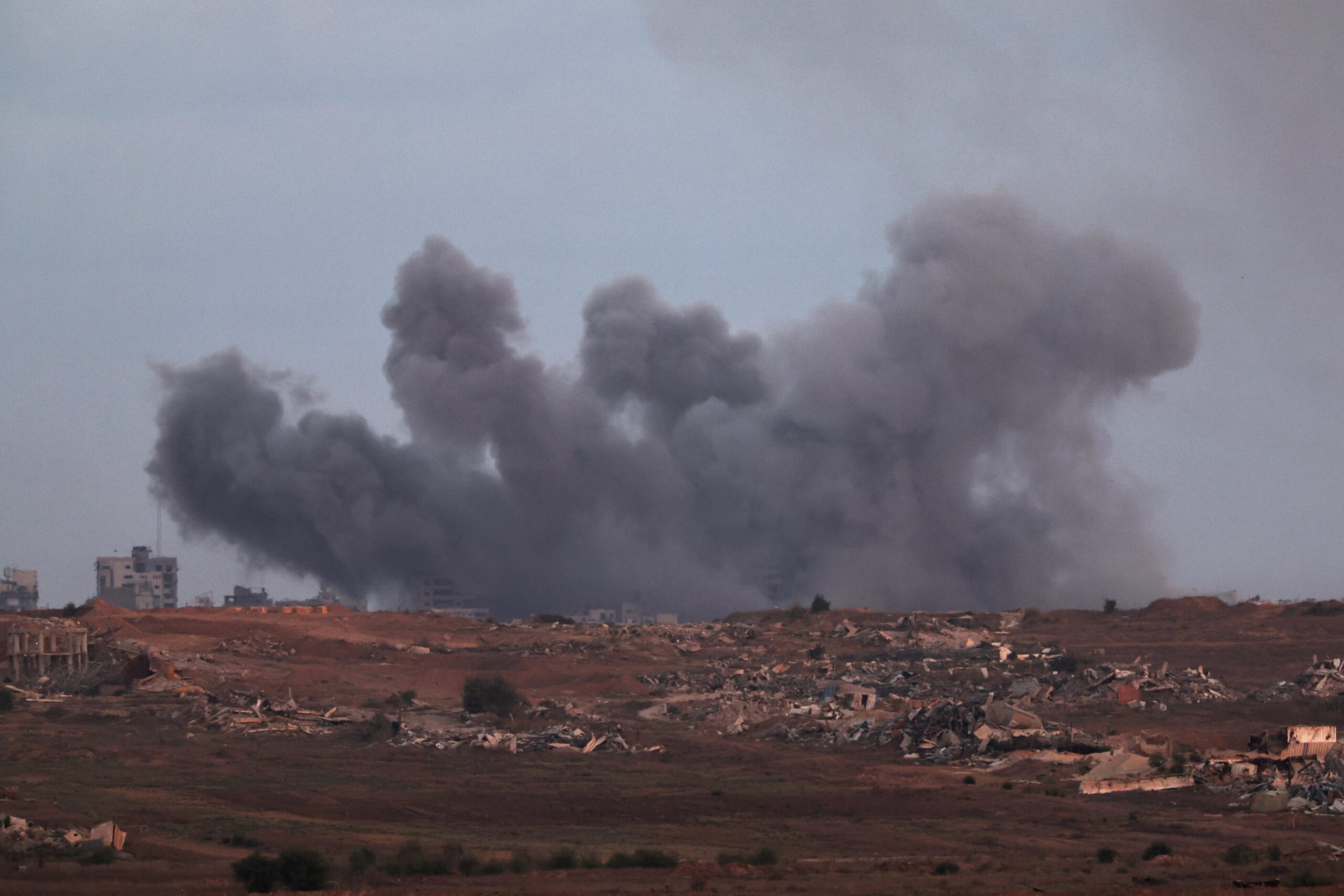 Il fumo si alza a seguito di un attacco israeliano alla periferia di Gaza City, visto dal lato israeliano del confine, il 6 ottobre 2025. EPA/ATEF SAFADI
