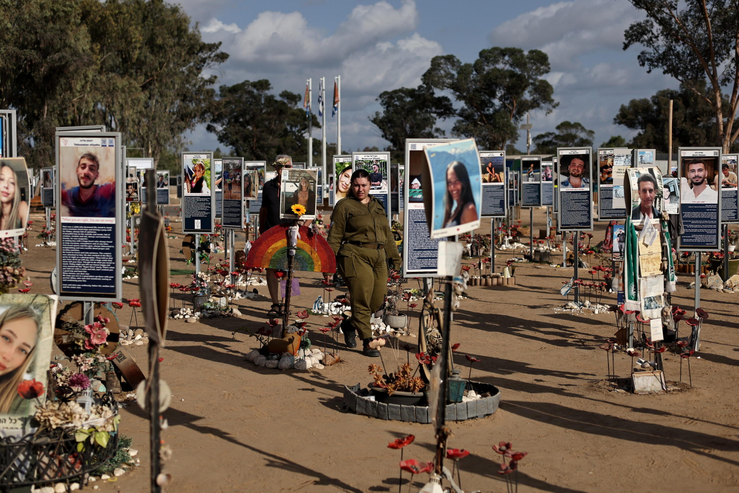 Memoriale del 7 ottobre presso il sito del festival musicale Nova, vicino a Re’im, al confine con Gaza, nel sud di Israele. Questo è il secondo anniversario dell’attentato di Hamas, che aveva preso decine di ostaggi e ucciso quasi 1.200 persone. EPA/ATEF SAFADI