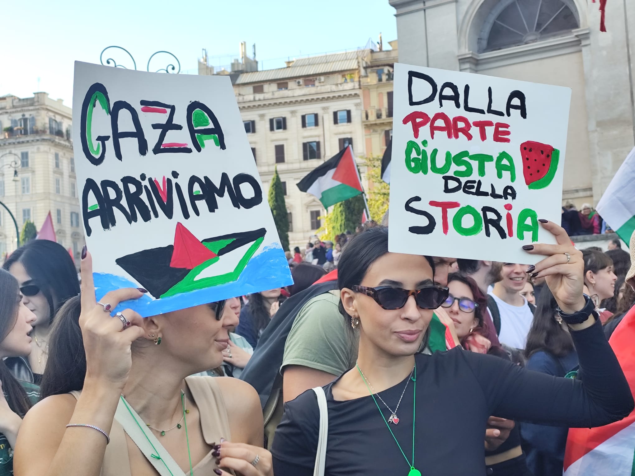 Manifestanti per Gaza e per la Global Sumud Flotilla a Roma, foto di Sara Fornaro