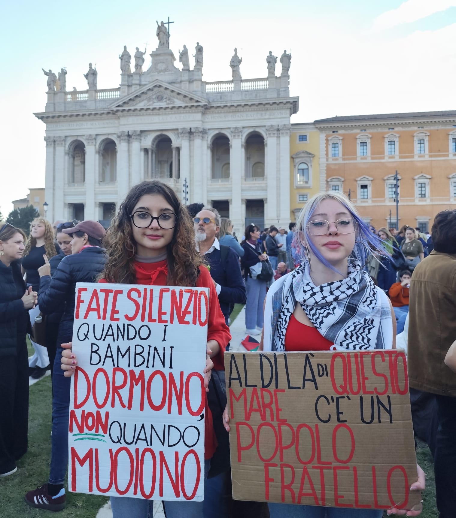 Qui bisogna essere chiari: gli estremismi di pochi non rappresentano il pensiero della marea di gente che era in piazza. Anzi. La maggior parte degli striscioni erano pacifici e parlavano di diritti, rispetto, bambini e valori. Antisemitismo, violenze, insulti vanno sempre condannati. E non si può pensare di manipolare – né da una parte né dall’altra – chi va in piazza per difendere una popolazione vittima di genocidio.