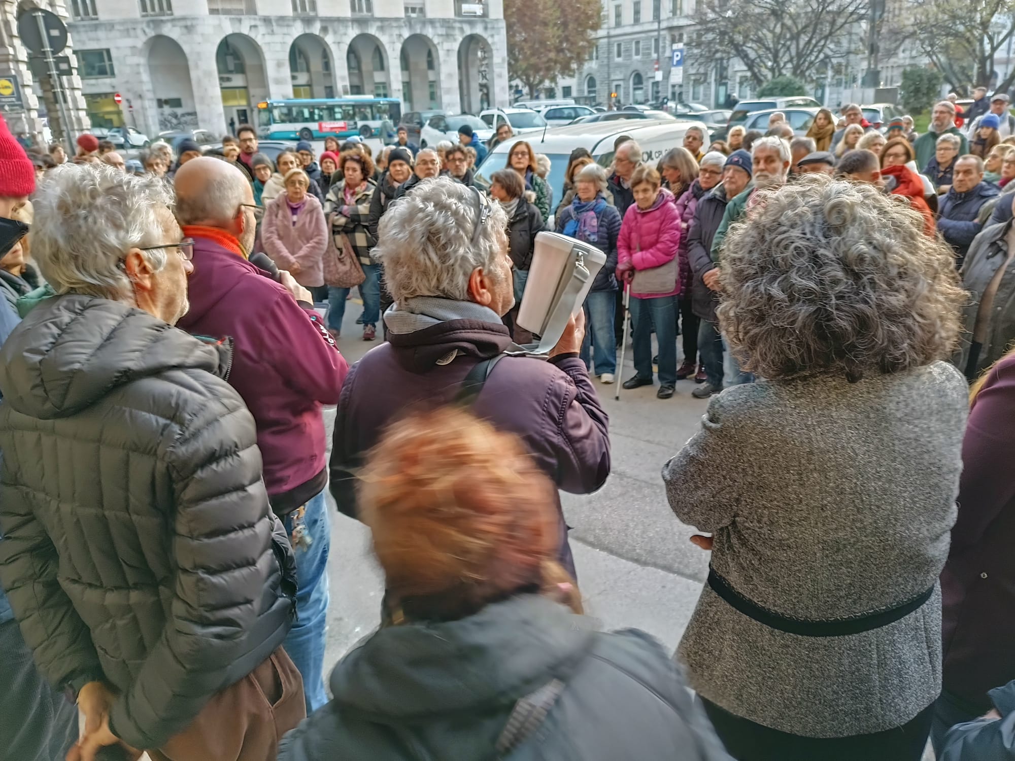 Ora siamo qui, davanti al Palazzo del Consiglio regionale, in una settimana particolare, quella in cui questa Istituzione affronta la sessione di bilancio 2026, che definisce la programmazione delle principali attività e la destinazione di 6 miliardi e mezzo di fondi pubblici. Con forza chiediamo che a supporto dei Comuni, soprattutto di quelli di confine, che risentono maggiormente dei flussi migratori, siano approvati seri provvedimenti a favore delle persone senza fissa dimora presenti sul territorio regionale, anche se in transito, incrementando i servizi a bassa soglia per quella che è chiamata “emergenza freddo”: è inaccettabile che regolarmente non vi si provveda, dal momento che tale situazione si ripresenta ogni anno, ed è dunque prevedibile e gestibile. È inaccettabile che sia irrisorio il numero dei posti nei dormitori per persone fragili e che sia comunque risibile a fronte dell’effettiva esigenza. È inaccettabile che chi vuole presentare la domanda di asilo, in attesa di accedere alle specifiche misure di accoglienza, sia abbandonato in strada per settimane o mesi.
