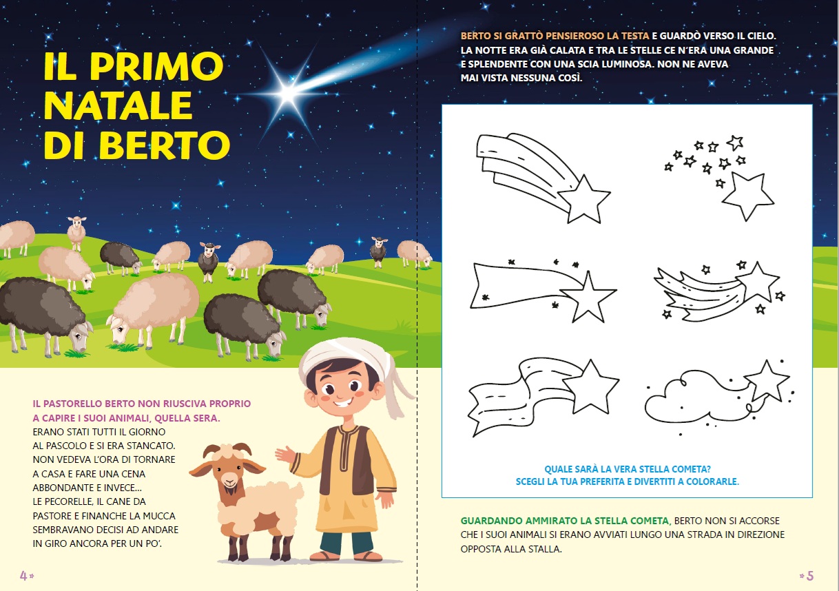 Mentre gli adulti uniranno tutte le copertine per formare un’unica coperta per Gesù Bambino, si darà inizio alla rappresentazione della storia: ogni bambino sarà il pastorello Berto.