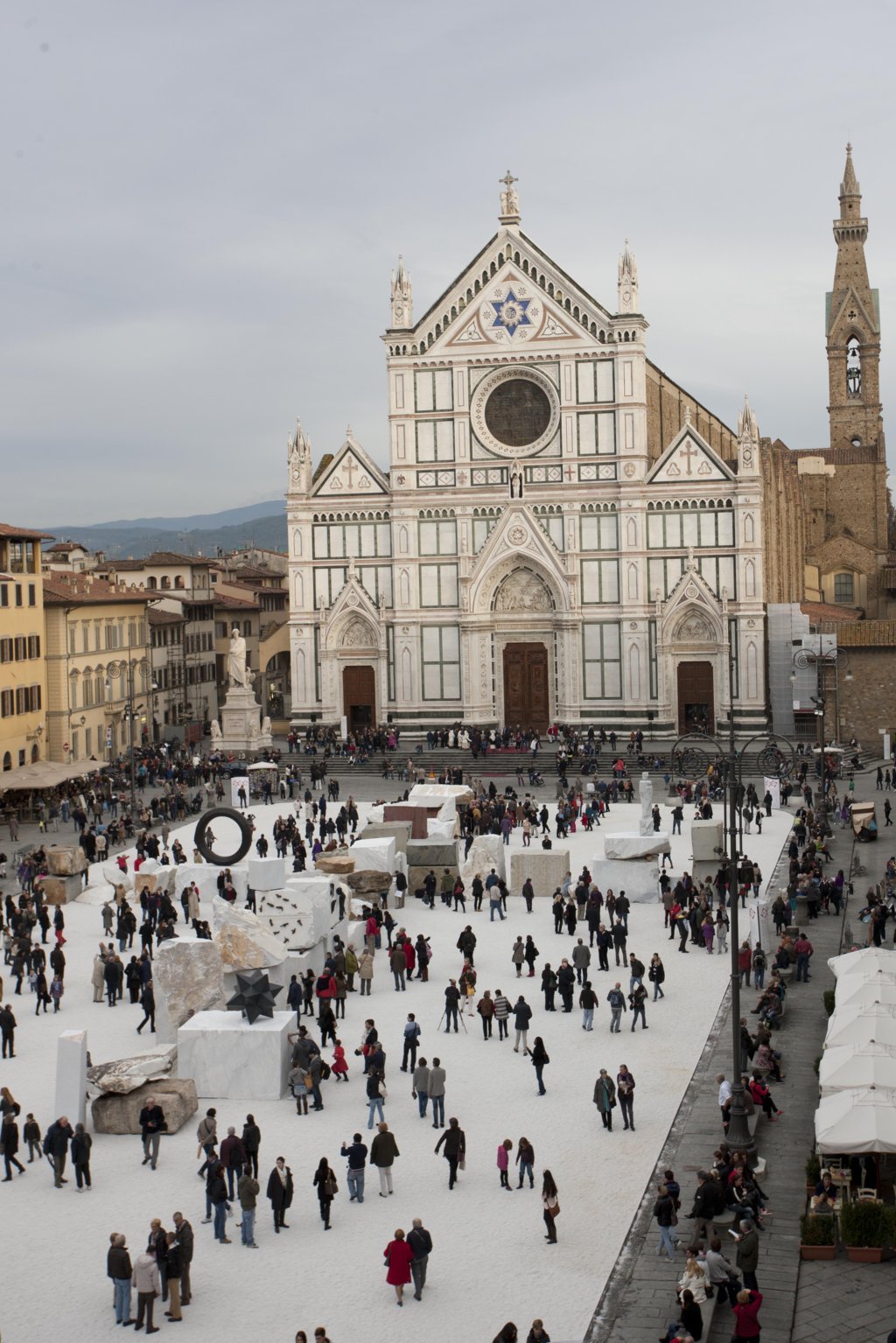 Ad aprire, lo scorso 3 novembre, la seconda edizione del laboratorio internazionale di economia e cultura “Florens 2012-Biennale internazionale dei beni culturali e ambientali” (in svolgimento fino all'11 novembre), è stata la monumentale installazione dell’artista Mimmo Paladino, un’opera site specific ideata appositamente per piazza Santa Croce.