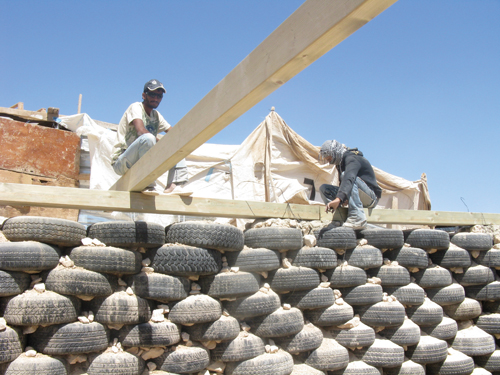 Nel villaggio di Khan Al Ahmar una struttura realizzata con vecchi copertoni d’auto è diventata simbolo pacifico di speranza, di una vita che continua